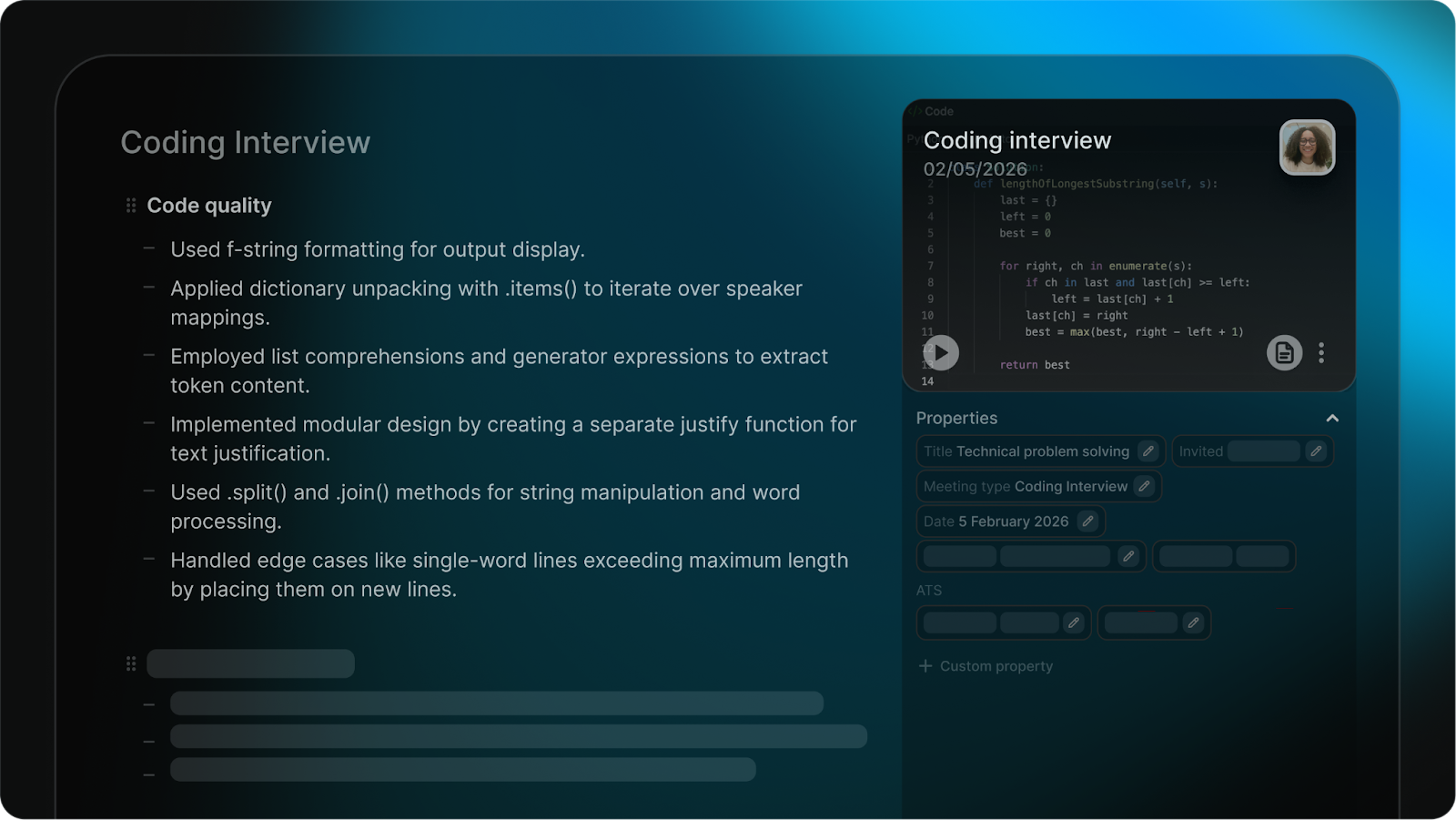 But most AI interview summaries treat these sessions like any other meeting. They only capture the spoken conversation, missing the code, the debugging steps, and the diagrams that actually matter.