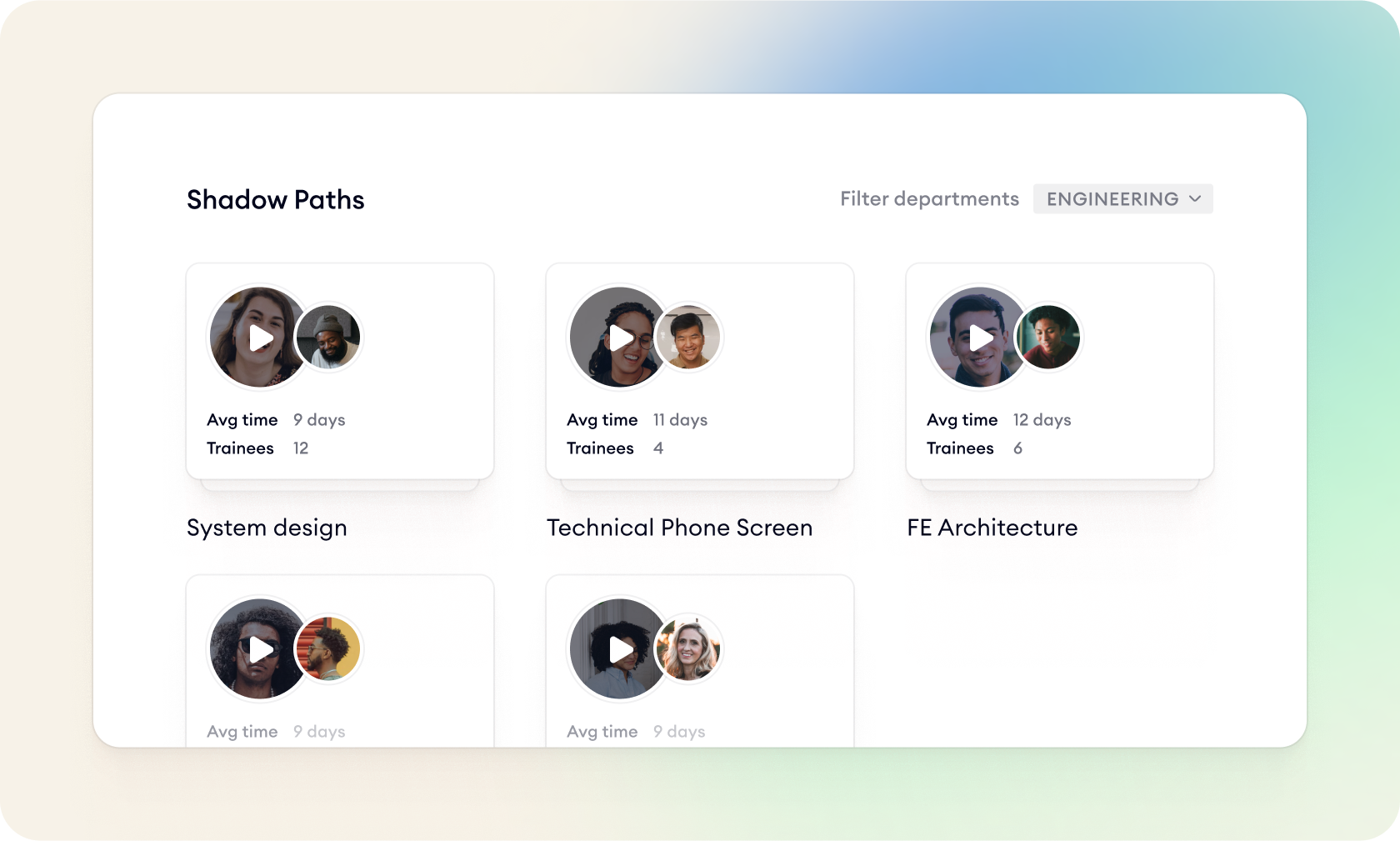 Metaview takes shadowing to the next level by automating the process and ensuring trainees only learn from the very best. In a Shadow Path with Metaview, you choose best-in-class examples for each interview loop and use those recordings to create a training module for new interviewers. Trainees are then automatically enrolled in these Shadow Paths and watch the recordings on their own time, removing the unnecessary complexities of manual scheduling. Recruiting teams have full visibility into where a trainee stands in the process.