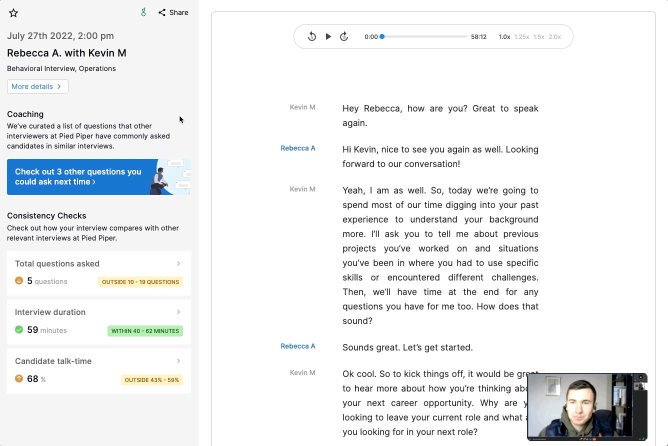 As a result of the hundreds of thousands of hours of interviews analyzed on our platform, we have the largest and richest corpus of interview data in the world. We’ve leveraged this data to unlock unprecedented ability to arm every interviewer with insights to improve quality and consistency.
