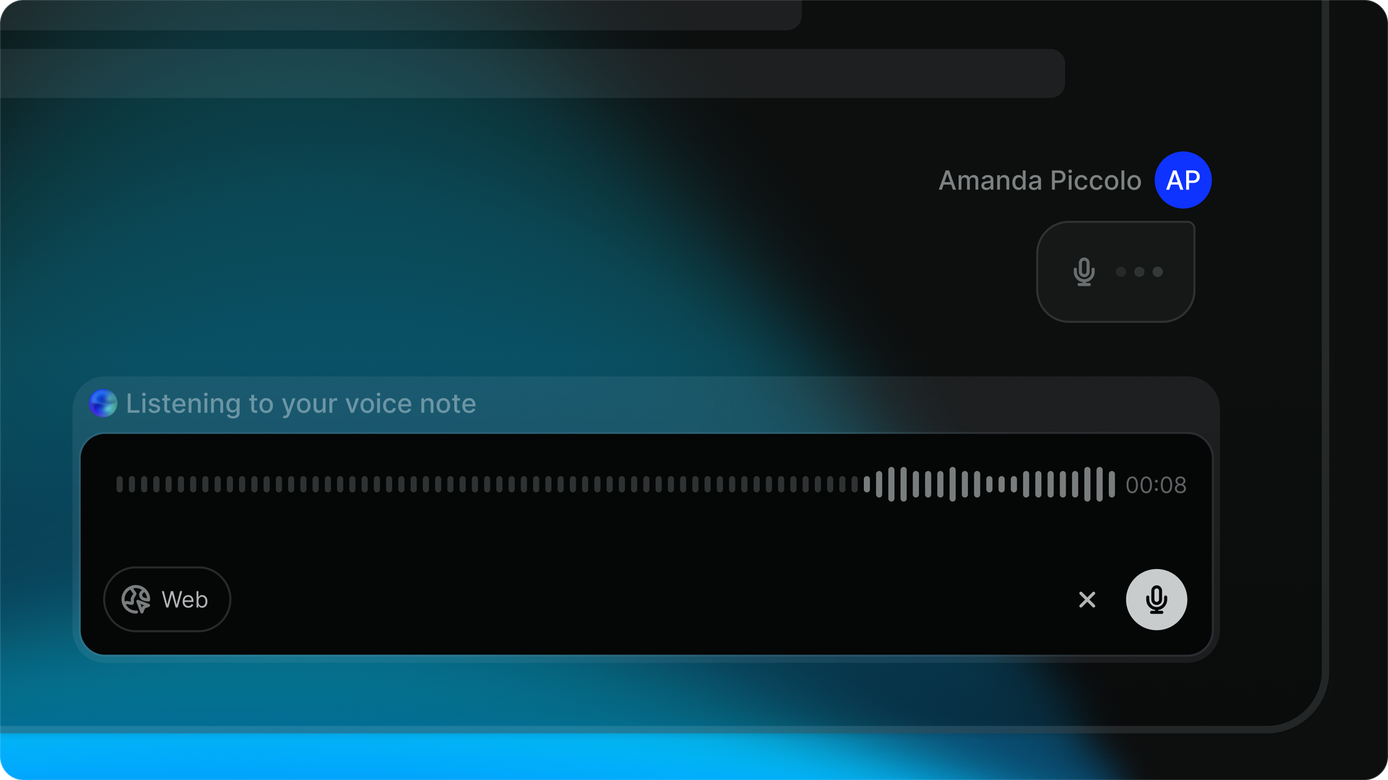 Nobody chooses recruiting for the typing. You can now speak directly to your AI Sourcing agent. It’s faster, works better on the go, and is perfect when your hands (or brain) are busy.