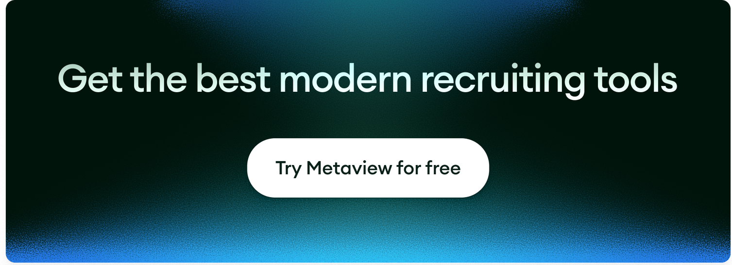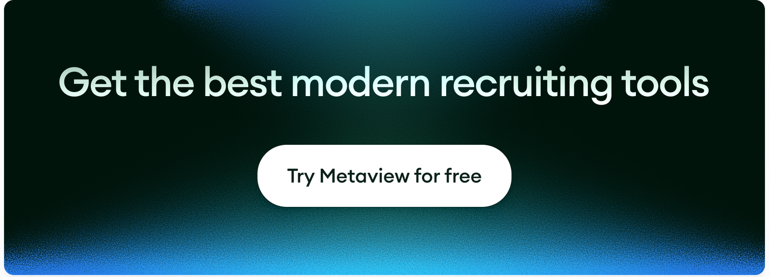 For the perfect starting point, try Metaview. Candidate conversations are the basis for your entire workflow, so distilling and analyzing these automatically lets you make make faster, more confident hiring decisions. This means better conversations with candidates, more consistent evaluations, and less time lost to admin.