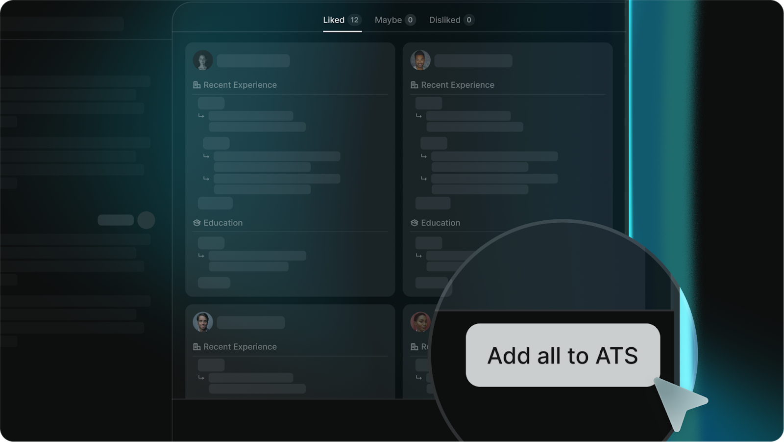 - Push “yes” candidates back into your ATS pipeline directly from the Candidates panel.