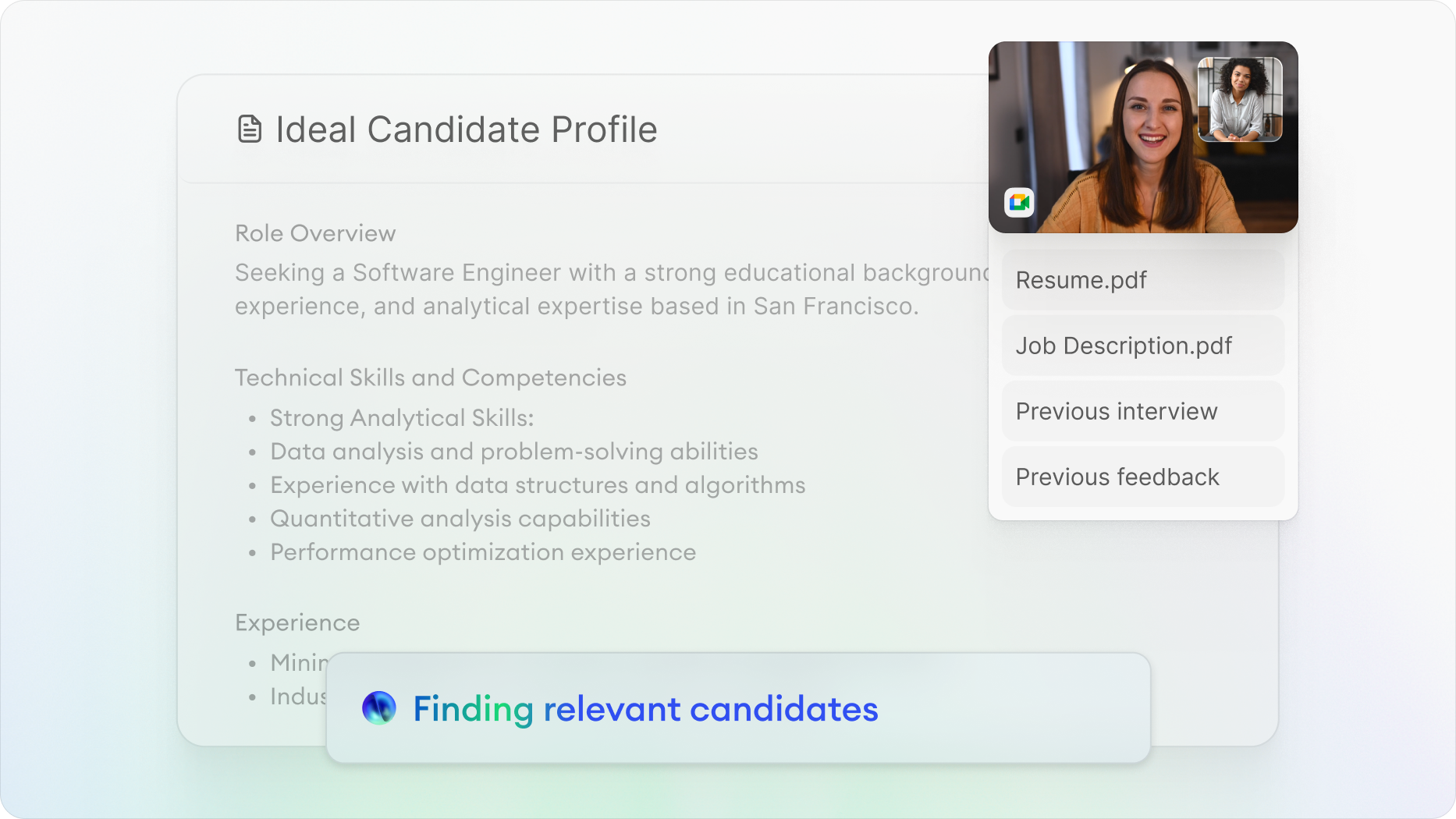 Kick off your candidate search with as much or as little context as you have, and we’ll turn it into a clear, structured ideal candidate profile. Quickly edit, align, and let the AI do the rest.