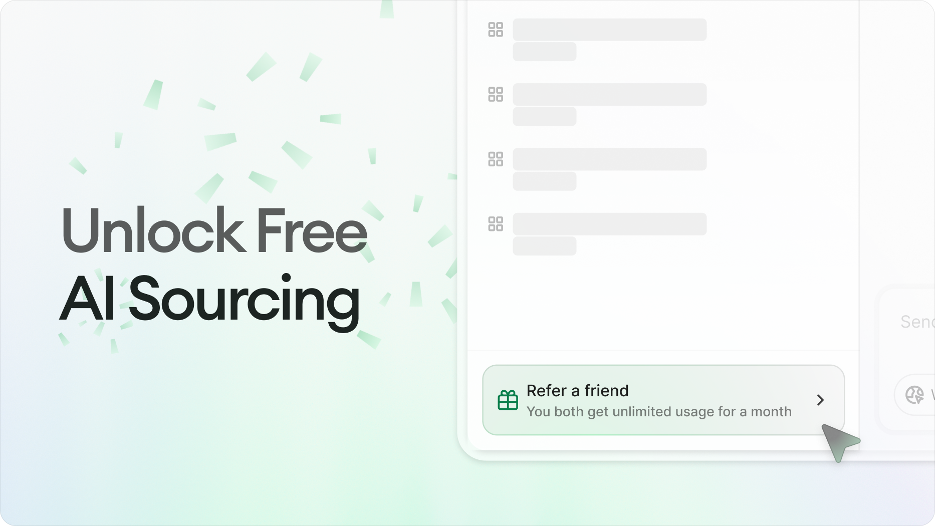 Every time you refer a friend or industry colleague to use AI Sourcing, you get a free month of unlimited usage.